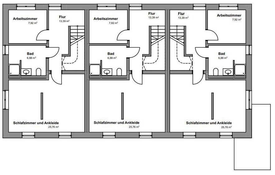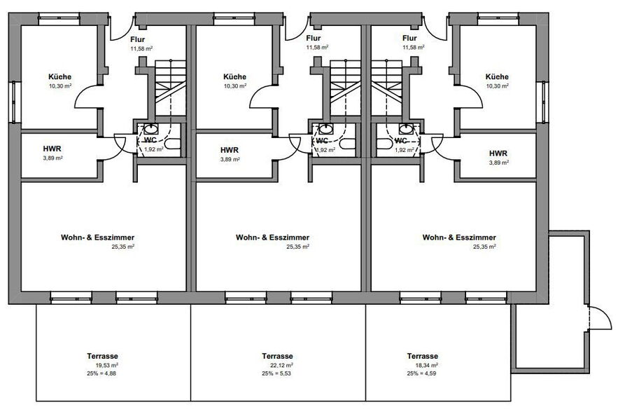 Die vier Wohnblöcke, bestehend aus jeweils drei Reihenhäusern, bestechen durch eine kluge Raumaufteilung und ein stilvolles Design. Die lichtdurchfluteten, großzügig geschnittenen Zimmer bieten Platz für Ihre individuellen Wohnideen. Besonders hervorzuheben ist die Möglichkeit, das Erdgeschoss zu separieren, um so ein Mehrgenerationenhaus zu schaffen. Hier können Familie und Privatsphäre ideal miteinander verbunden werden.