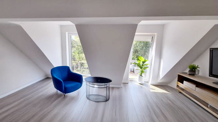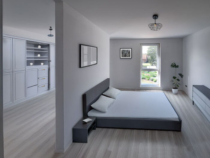 Der größte Raum verfügt über einen praktischen und eleganten Raumtrenner, welchen Sie ganz nach Ihren Bedürfnissen nutzen können - als Ankleide, kreatives Büro oder als gemütlichen Rückzugsort.